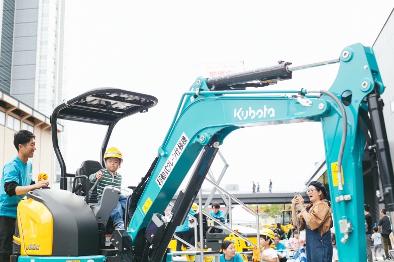【概要】電動建機の運転席で記念写真!未来の建設体験