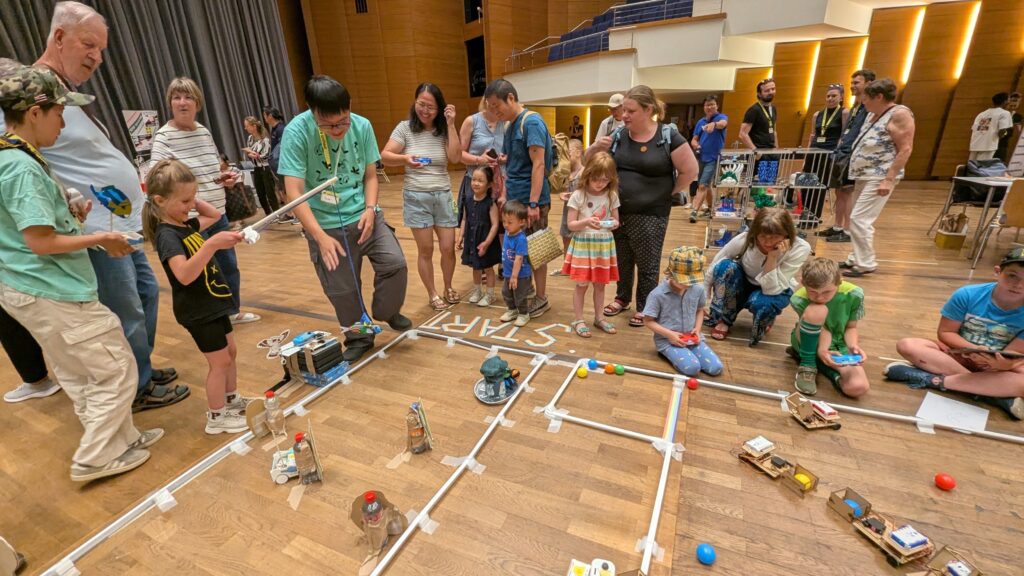 ▲Makers Unitedには、CO-SAKUロボコンのロボットを持参。たくさんの人に遊んでもらいました