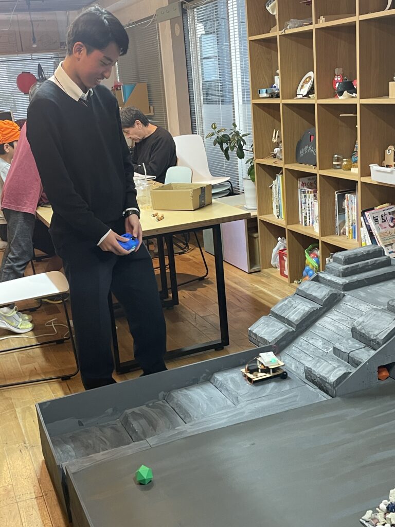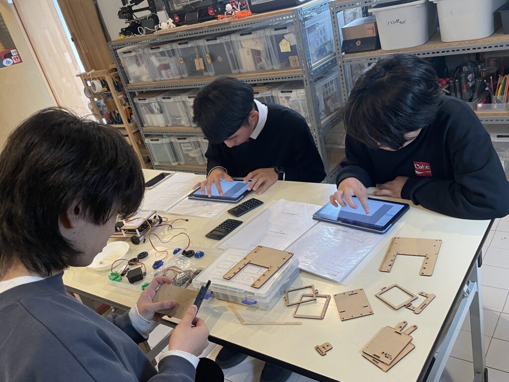今回、自由学園の高校生たちの製作をサポートしてくれるのは、高校1年生のサポーター。小学6年生の時にコーサク室でロボットを製作し、ロボコンに出場した経験を持っています。