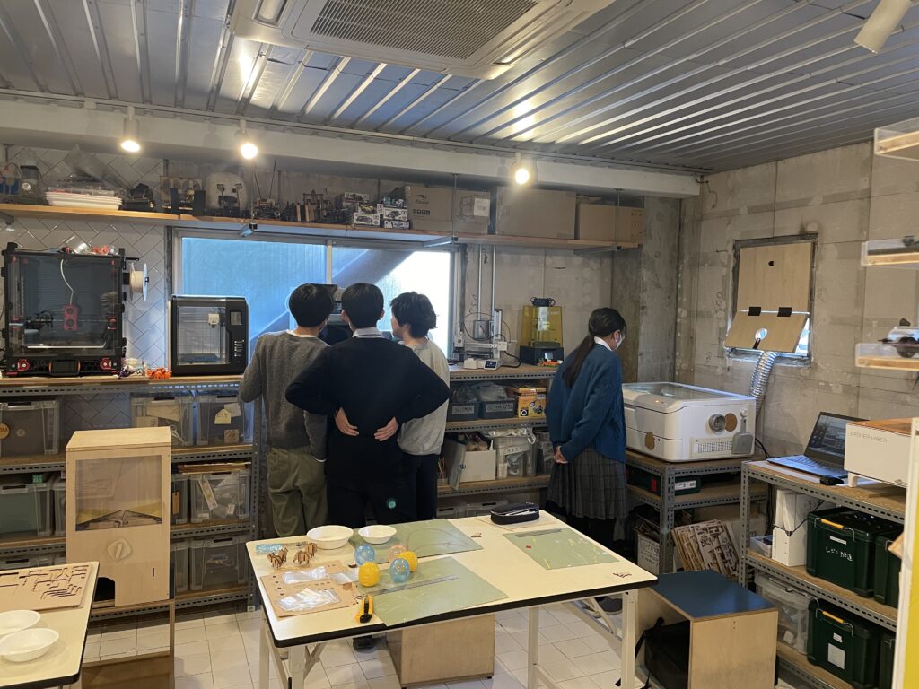 ▲シモキタロボフェス2025にガチャガチャマシンを持っていくため、カプセルに入れる動物パズルをレーザー加工で製作してもらいました。レーザー加工機が動いている間、関心は3Dプリンターへ・・・