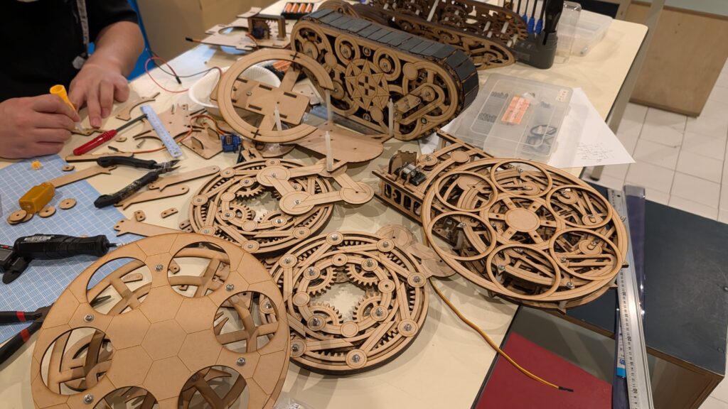 ▲リボルボーグの製作の様子。パーツは全て、コーサク室のレーザーカッターで加工しています